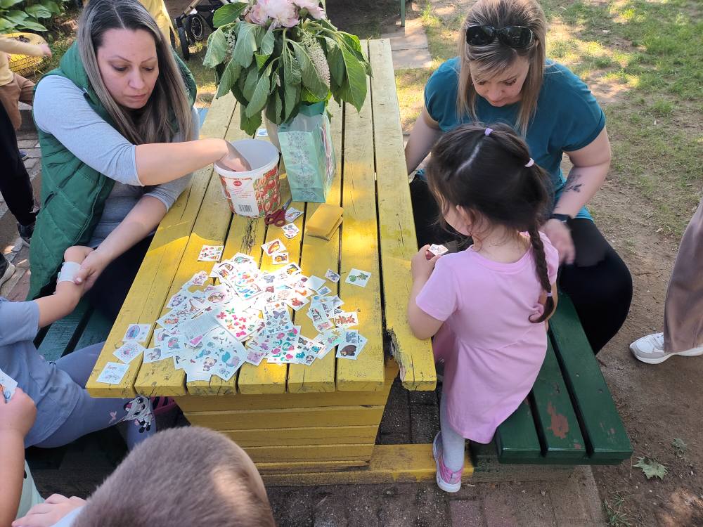 Reggel közösen ðíszítettük lufikkal az óvoda teraszát, ezt követően közös tornára, vizuális tevékenységre, ugrálóvárak birtokbavételére,szabadtéri játékokra, csillámtetoválásra volt lehetőség!