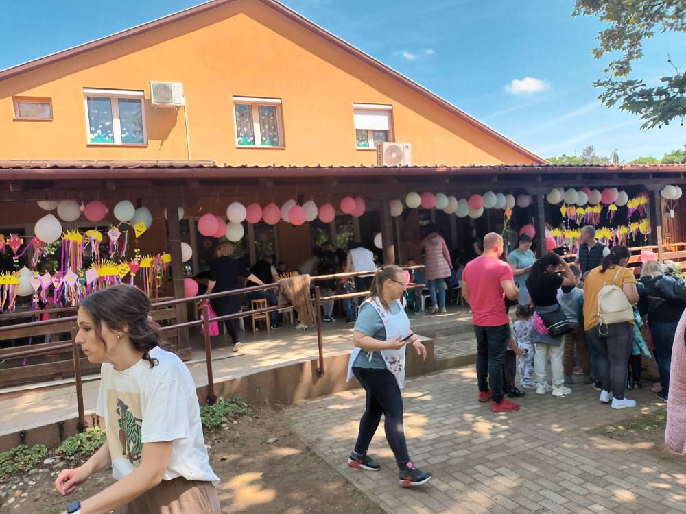 Reggel közösen ðíszítettük lufikkal az óvoda teraszát, ezt követően közös tornára, vizuális tevékenységre, ugrálóvárak birtokbavételére,szabadtéri játékokra, csillámtetoválásra volt lehetőség!